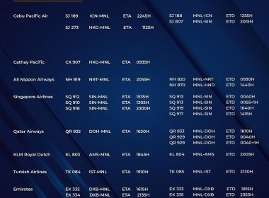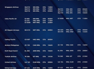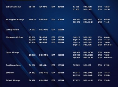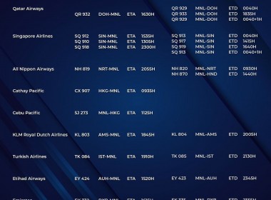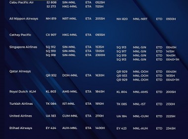 (Eagle News) — The Manila International Airport Authority has released its list of operational commercial flights for Saturday, Aug. 21: Flight schedules may change at any given time. MIAA advised passengers to coordinate with their airlines first prior to the scheduled travel as a result. The travel ban on India and nine other countries has been extended. Metro Manila is under a modified enhanced community quarantine until the end of the month.