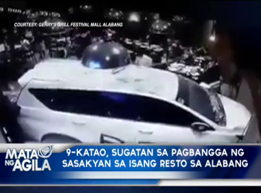 (Eagle News) — Siyam-katao ang sugatan matapos bumangga ang isang sasakyan sa isang restaurant sa Alabang. Batay sa inisyal na impormasyong hawak ng mga otoridad, aksidenteng naapakan ng driver ang gas pedal na naging dahilan upang bumangga ito sa loob ng isang establisyemento sa Festival Mall. Kita sa CCTV na inararo ng SUV ang isang pamilya na kumakain nang mangyari ang insidente. Isa sa mga nasugatan ang isang 9 na buwang gulang na sanggol.
