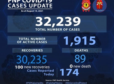 (Eagle News)–Over 100 more COVID-19 cases were reported among police personnel. According to Philippine National Police data, the 174 additional cases pushed the total cases to 32239. Of these, 1915 were active. Recoveries rose to 30235 including the additional 100 recoveries. The death toll remains at 89, with no additional deaths reported. The police are among the country’s frontliners amid the COVID-19 pandemic. President Rodrigo Duterte has said uniformed personnel should be among the priorities […]