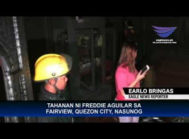 (Eagle News) — The house of singer-songwriter Freddie Aguilar was hit by fire late Tuesday night. A radio report from DZBB said the house in Barangay North Fairview, Quezon City started at 11:06 p.m. The fire reportedly started in Aguilar’s music room, but firemen have yet to determine how it started in the first place. The blaze–which reached the first alarm—was put out at 11:39 p.m. No one was reported injured, even if Aguilar’s wife, Jovie, […]