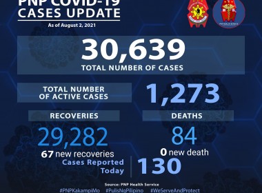 (Eagle News) — Over 100 more COVID-19 cases have been reported among police personnel. Recent Philippine National Police data showed the additional 130 COVID-19 cases pushed the total COVID-19 cases among PNP personnel to 30639. Of these, 1273 were active. PNP COVID-19 recoveries rose to 29282, including the additional 67 recoveries. No additional deaths were reported, which means the PNP COVID-19 death toll remains at 84. The inoculation of police personnel is still ongoing. PNP […]