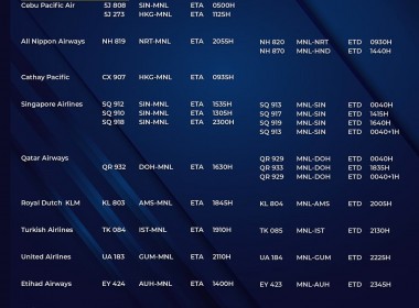 (Eagle News) — The Manila International Airport Authority has released its list of operational commercial flights for Sunday, Aug. 1: Flight schedules may change at any given time. According to MIAA, passengers should confirm their flights prior to their date of travel as only those with the confirmation will be allowed entry into the airport. The Philippines has extended the travel ban on India and nine other countries. Metro Manila is also under a general […]