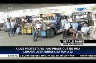 QUEZON City, Philippines (Eagle News) — Public utility jeep drivers and operators are set to conduct another transport strike on Monday, May 22, to protest the plan of the Land Transportation Franchising and Regulatory Board to phase out and scrap old jeepneys. George San Mateo, president of the Pinagkaisang Samahan ng mga Tsuper at Operator Nationwide, and Convenor of “No to Jeepney Phase-Out Coalition” (NJPOC), explained that although the government assured them there would be […]