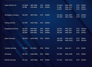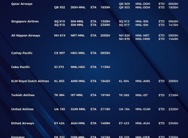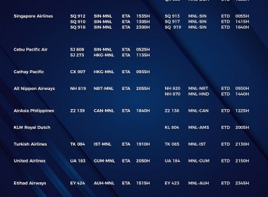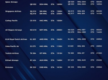 (Eagle News) — The Manila International Airport Authority has released its list of operational commercial flights for Friday, July 2: MIAA advised passengers to coordinate with their airlines before proceeding to the airport. It said flight schedules may be subject to changes at any given time. The Philippines extended its travel ban on India, Pakistan, Nepal, Sri Lanka, Nepal, Oman and the United Arab Emirates to July 15. The Department of Health has said border […]