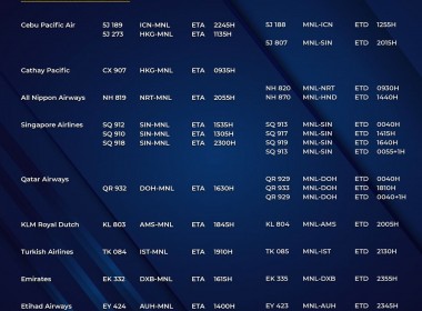 (Eagle News) — The Manila International Airport Authority has released its list of operational commercial flights for Saturday, July 3: Flight schedules may change at any given time. According to MIAA, in those cases, passengers should coordinate with their respective airlines. The Philippines has extended its travel ban on passengers from India, Pakistan, Sri Lanka, Nepal, Oman, Bangladesh and the United Arab Emirates. The ban is in effect until July 15. The Department of Health […]