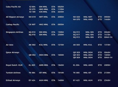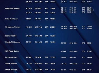 (Eagle News)–The Manila International Airport Authority has released its list of operational commercial flights for Friday, June 25: MIAA advised passengers to confirm their flights with their airlines before proceeding to the airport. Flight schedules may be subject to changes. Metro Manila and Bulacan are under a general community quarantine but with some restrictions until June 30. Travelers from India, Pakistan, Sri Lanka, Oman, Bangladesh, Nepal and the United Arab Emirates are still banned from […]
