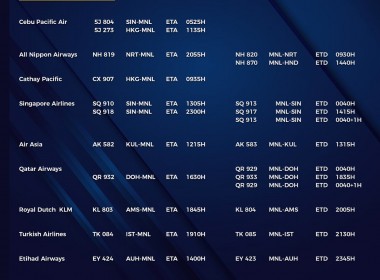 (Eagle News) — The Manila International Airport Authority has released its list of operational commercial flights for Friday, June 18: Flight schedules may change at any given time. According to MIAA, passengers should secure confirmation of their flights first as only those with the confirmation will be allowed entry into the airport. Metro Manila and Bulacan are under a general community quarantine but with some restrictions until June 30. The travel ban on passengers from […]