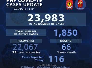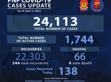 (Eagle News) — Over 200 more police personnel have tested positive for COVID-19. Philippine National Police data said the additional 207 cases pushed the PNP COVID-19 total to 23770. Of these, 1809 were active. Over 100, or 138, more recoveries also pushed the PNP COVID-19 recovery total to 21896. No additional death was reported, which means the PNP COVID-19 death toll remains at 65. The police are among the country’s frontliners amid the COVID-19 pandemic. […]