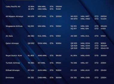 (Eagle News) — The Manila International Airport Authority has released its list of operational commercial flights for Sunday, May 30: Flight schedules may change at any given time. NCR Plus, including Metro Manila, i so far under general community quarantine but with heightened restrictions. As a result, non-essential travel in and outside the bubble is still prohibited. The Department of Tourism has said, however, that 13 hotels in Metro Manila were already open to the […]