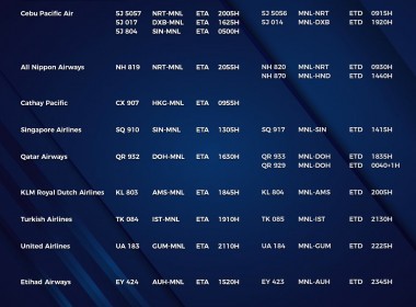 (Eagle News) — The Manila International Airport Authority has released its list of operational commercial flights for Wednesday, April 28: MIAA advised passengers to secure confirmation of their flights before going to the airport. It said only those with the confirmation will be allowed entry into the airport premises. Flight schedules are also subject to changes, MIAA said. Starting April 12, the Palace said the NCR Plus area, including Metro Manila, would be placed […]