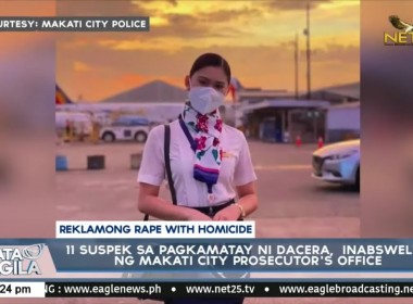 Ni Moira Encina Eagle News Service (Eagle News) – Inabswelto ng Makati City Prosecutor’s Office sa reklamong rape with homicide ang 11 suspects sa pagkamatay ng flight attendant na si Christine Dacera. Ayon kay Atty. Honey Rose Delgado, tagapagsalita ng Office of the Prosecutor General, ibinasura ng piskalya ang reklamong kriminal na inihain ng Philippine National Police laban sa mga respondents dahil sa kawalan ng probable cause. “We received info from Makati City Office […]