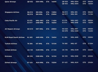 (Eagle News) — The Manila International Airport Authority has released its list of operational commercial flights for Thursday, April 15: Flight schedules may change at any given time. MIAA advised passengers to secure confirmation of their flights beforehand as only those with the confirmation will be allowed entry into the airport. NCR Plus composed of Cavite, Laguna, Rizal, Bulacan, and Metro Manila are so far under a modified enhanced community quarantine, imposed by the Palace […]