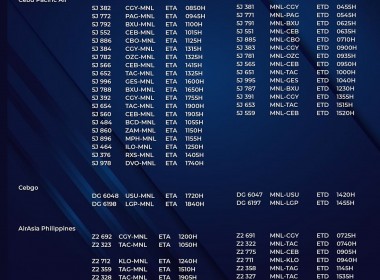 (Eagle News) — The Manila International Airport Authority has released its list of operational commercial flights for Wednesday, April 14: Flight schedules may change at any given time. MIAA advised passengers to secure confirmation of their flights as only those with the same will be allowed entry into the airport premises. Metro Manila, Cavite, Laguna, Bulacan, and Rizal are under a modified enhanced community quarantine until the end of the month amid the surge in […]