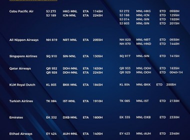 (Eagle News) — The Manila International Airport Authority has released its list of operational commercial flights for Friday, April 2: Flight schedules may change any given time. Recently, the Palace announced an “NCR Plus” bubble, where further restrictions will be imposed for two weeks starting the day of the announcement. On March 28, the Palace said NCR Plus, which covers Metro Manila, Cavite, Laguna, Bulacan, and Rizal, would revert to an enhanced community quarantine, the strictest […]