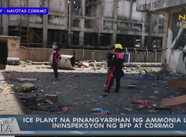 BFP, city officials still probing how leak occured, inspect ice plant Eagle News Service reporter Mar Gabriel gives a view of the ice plant in Navotas City which is the site of the Feb. 3 ammonia leak accident that has killed two people. The Burea of Fire Protection and the City Disaster Risk Reduction and Management Office of Navotas City inspected the site of the ammonia leat inside the T.P. Marcelo ice plant on Thursday […]