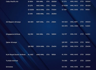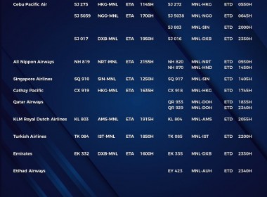 (Eagle News) — The Manila International Airport Authority has released its list of operational commercial flights for Monday, Jan. 25: Flight schedules may change at any given time. All passengers were advised to confirm their flights on the day they are supposed to be scheduled. MIAA earlier said only those with the confirmation will be allowed entry into the airport. The Philippine government has imposed travel restrictions on over 30 countries following reports of the […]