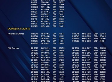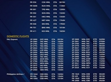 (Eagle News) — Several flights for Saturday, December 19, have been cancelled due to the inclement weather. The Manila International Airport Authority said the following are cancelled: PAL Express (2P) 2P 2889/2890 Manila-Ozamiz-Manila 2P 2923/2924 Manila-Legazpi-Manila Signal No. 1 is raised over parts of Luzon, Visayas and Mindanao due to Tropical Depression “Vicky.” MIAA earlier advised passengers to confirm their flights on the day they are supposed to be scheduled as only those with the […]