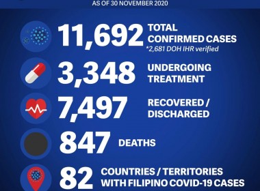 (Eagle News) — Sixteen more COVID-19 cases have been reported among overseas Filipinos. The DFA said with the additional cases, the total number of COVID-19 cases among Filipinos abroad rose to 11692. No additional recoveries were reported, which means the recovery total remains at 7497. The death toll rose to 847 including the two additional fatalities. Based on DFA data, the Middle East and Africa are still the regions with the most COVID-19 cases, recoveries […]