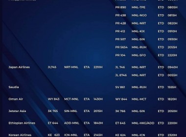 (Eagle News)–The Manila International Airport Authority has released its list of operational commercial flights for Tuesday, Nov. 17: Flight schedules may be subject to changes. Domestic flights are allowed but subject to the travel requirement set forth by the locl government unit that has jurisdiction over the area of jurisdiction. The government has eased some restrictions on international travel, with Filipinos now allowed to go on non-essential outbound travel subject to travel requirements. Foreigners with […]