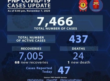 (Eagle News)–Sixty-eight more police personnel have recovered from COVID-19. The Philippine National Police said with the additional recoveries, the recovery tally among police personnel rose to 7005. Forty-seven new COVID-19 cases pushed the total to 7466. Of these, 437 were active. One additional death pushed the death toll to 24. The police are among the country’s frontliners amid the COVID-19 pandemic, as they continue to man checkpoints and enforce laws. The PNP has vowed to […]