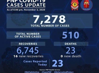 (Eagle News)–Sixteen more police personnel have recovered from COVID-19. The Philippine National Police said with the additional recoveries, the recovery total rose to 6745. Twenty-three more COVID-19 cases, however, pushed the total to 7278. Of these, 510 were active. The death toll remains at 23 with no additional death reported. The police remain among the country’s frontliners amid the COVID-19 pandemic as they continue to man checkpoints and enforce laws. The PNP has vowed to […]