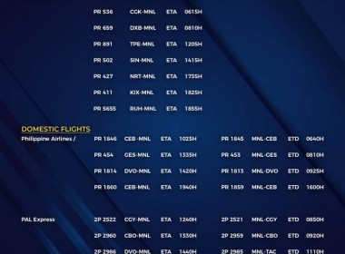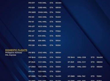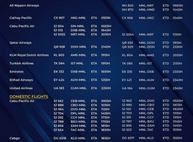 (Eagle News)–The Manila International Airport Authority has released its list of operational commercial flights for Tuesday, Nov. 3: Flight schedules may be subject to changes. Earlier, MIAA said travelers should get a confirmation of their flights, noting that only those with the confirmation will be allowed entry into the airport premises. On Monday, flight operations resumed at the Ninoy Aquino International Airport after operations were suspended for a day due to “Rolly.”