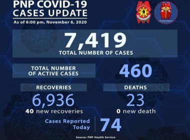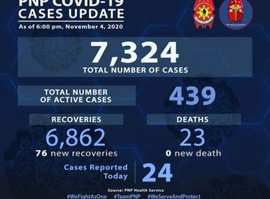(Eagle News)–Seventy-six more policemen have recovered from COVID-19. The Philippine National Police said with the additional recoveries, the PNP COVID-19 recovery tally rose to 6862 as of Wednesday night. Twenty-four more COVID-19 cases pushed the total to 7324. Of these, the PNP said 439 were active. There were no additional deaths reported, which means the death toll remains at 23. Police personnel continue to man checkpoints and enforce laws amid the COVID-19 pandemic, making them […]