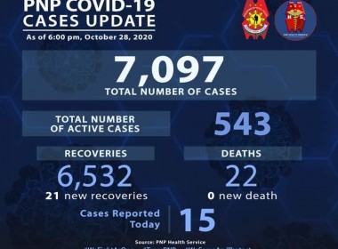 (Eagle News)–Twenty-one more police personnel have recovered from COVID-19. The Philippine National Police said with the additional recoveries, the tally rose to 6532. Fifteen additional COVID-19 cases, however, pushed the total to 7097. Of these, 543 were active. No additional deaths were reported, which means the death toll remained at 22. The police are among the country’s frontliners amid the COVID-19 pandemic, as they man quarantine checkpoints and enforce laws. PNP Chief Camilo Cascolan has […]