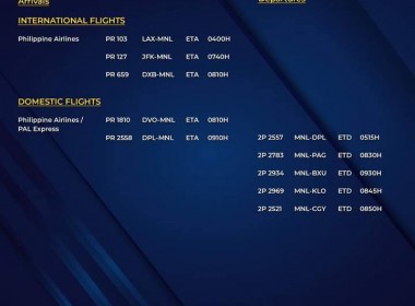 (Eagle News)–The Manila International Airport Authority has released its list of operational commercial flights for Thursday, Oct. 29: Flight schedules may be subject to changes. MIAA advised passengers to secure confirmation of their flights on the day they are supposed to be scheduled. MIAA said only those with the confirmation will be allowed entry into the airport premises. Some restrictions on international travel have been eased, with foreigners with investor visas now allowed entry into […]