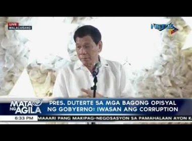 Pres. Duterte sa mga bagong opisyal ng gobyerno: “Iwasan ang corruption”