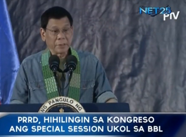 QUEZON CITY, Philippines (Eagle News) — President Rodrigo Duterte on Monday, November 27 attended the very first Bangsamoro Assembly in Sultan Kudarat, Maguindanao where he pushed for an all-inclusive peace talks in Mindanao. The President faced an estimated one million Muslims who presented their manifesto asking for the quick passage of the Bangsamoro Basic Law in Congress. In his speech, President Duterte said he is urging Congress to work for the swift passage of […]