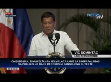 President Rodrigo Duterte on Saturday night accused Deputy Ombudsman Melchor Arthur Carandang of “lying to his teeth” and “waving fabricated evidence.” President Duterte made the accusation after the Anti-Money Laundering Council itself denied it had provided the Ombudsman with a report on the Duterte family’s bank transactions, as claimed by Carandang. Carandang said in an interview that the report was used as a basis to launch a probe on the President’s family wealth. “Waving fabricated evidence, […]