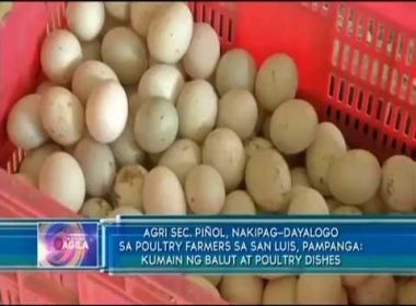 (Eagle News) — Mismong sina Agriculture Secretary Emmanuel “Manny” Piñol at mga lokal na opisyal ng Pampanga ang kumain ng mga balut at iba pang poultry dishes ng San Luis, Pampanga. Ito’y upang ipakita na ligtas kainin ang mga itlog at iba pang poultry products mula sa nasabing bayan at sa buong lalawigan. Subalit sa harap nito, hindi pa rin mailalabas ang mga poultry product mula sa idineklarang one-kilometer radius control area kung saan naka-concentrate […]