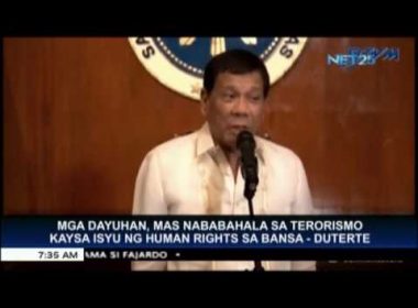 (Eagle News) — President Rodrigo Duterte said that other countries are now more concerned with terrorism and less with the human rights situation in the country. Duterte said this after meeting with United States Secretary of State Rex Tillerson and Australia’s Foreign Affairs Minister Julie Bishop who both paid courtesy calls in Malacanang on August 7. “Mostly, they have considerably toned down on human rights,” Duterte said. “Nobody… mostly it was terrorism. But no one […]