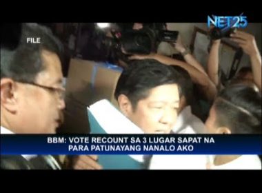 QUEZON City, Philippines (Eagle News) — Former Senator Ferdinand “Bongbong” Marcos Jr., expressed confidence that the three provinces his camp had identified for a vote recount will be enough to prove that he won in the last election. “I have identified already the three provinces where we were cheated enough to overcome her lead,” Marcos said in an interview referring to the lead of the proclaimed Vice President Leni Robredo Marcos revealed the three areas are […]