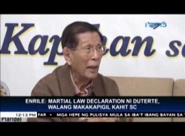 QUEZON City, Philippines (Eagle News) — Former Senate President Juan Ponce Enrile expressed his support for President Rodrigo Duterte’s declaration of martial law in Mindanao. Enrile also said that he can see no reason why anyone would criticize President Duterte as it is provided in the law that the President can declare martial law when there is violence.