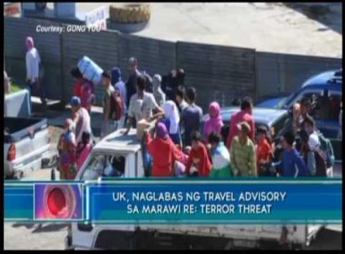 (Eagle News) — Nagbabala na ang British government sa kanilang mga kababayang nasa bansa na iwasan munang magtungo sa Western Mindanao, kabilang na ang Marawi City kung saan nagpapatuloy ang operasyon ng tropa ng gobyerno laban sa teroristang grupong Maute. Sa travel advisory ng Foreign and Commonwealth Office (FCO) ng United Kingdom sa kanilang website, inaabisuhan nila ang mga Briton na huwag magtungo sa lugar dahil sa terorismong nagaganap doon. Kabilang sa travel warning ang iba […]