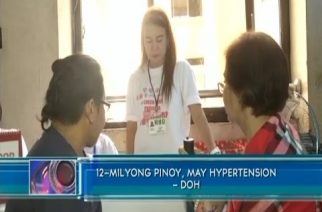 (Eagle News) — Sa pag-aaral ng Department of Health, aabot sa labindalawang milyong Pilipino ang mayroong hypertension. Subalit kalahati lamang sa nasabing bilang o lumalabas na isa sa bawat limang Pilipino ang alam na sila’y mataas ang presyon ng dugo. Ayon pa sa DOH, importanteng malaman agad ng isang indibidwal kung may hypertension ito o wala sa pamamagitan ng simpleng pag-alam sa blood pressure. Maituturing na walking time bomb ang altapresyon bukod sa pagiging silent […]