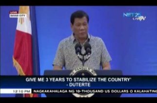 (Eagle News) — Humihingi ng dagdag na panahon si Pangulong Rodrigo Duterte upang ayusin ang problema ng bansa partikular na ang patungkol sa korapsyon at iligal na droga. “In the fullness of God’s time. You give me three years and I will be able to stabilize the country. By that time, medyo on deck na tayo for a new phase of our national lives,” pahayag ni Duterte. Ayon kay Duterte, una na siyang nangako sa […]
