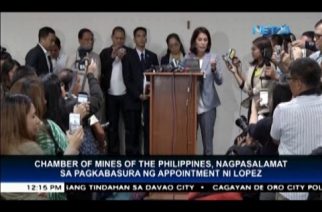 (Eagle News) — The Chamber of Mines of the Philippines thanked the Commission on Appointments for what it said was its “speedy resolution” of Regina Lopez’s nomination as environment secretary. “(We are) thankful to the Commission…,” COMP vice president Ronald Recidoro said. In an interview with Net 25’s, Sa Ganang Mamamayan, Recidoro added that the country needs a secretary who understands environmental issues and natural resource management. He added that this was not the end […]