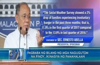 Pagbaba ng bilang ng mga nagugutom na Pilipino, ikinasiya ng Pamahalaan