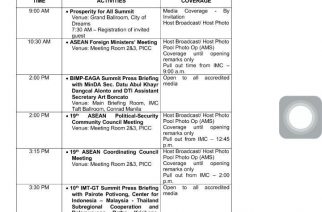 Ni Jerold Tagbo Eagle News Service Kabi-kabilang mga aktibidad ang nakalinya ngayong araw sa pagpapatuloy ng 30th Association of Southeast Asian Nations summit sa bansa. Una nang sinimulan kanina sa City of Dreams ang Prosperity for All Summit. Panauhin sa nasabing pagtitipon sina Malaysian Prime Minister Najib Razak, Vice President Leni Robredo, Pampanga Rep. Gloria Arroyo, Senador Bam Aquino, at iba pang business leaders. Kaninang 10:30 a.m., isinagawa naman sa Philippine National Convention Center ang ASEAN foreign ministers meeting at natalakay ang mga isyung […]