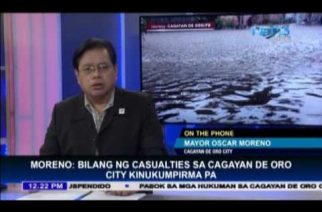 QUEZON City, Philippines (Eagle News) — In an exclusive interview with Agila Balita Alas Dose, Cagayan De Oro City Mayor Oscar Moreno talks about the water level in Cagayan De Oro City after strong rainfalls induced flash flooding in the city. According to Mayor Moreno, there are no more rains and the water level is already going down. Families are also returning to their homes from the evacuation centers.
