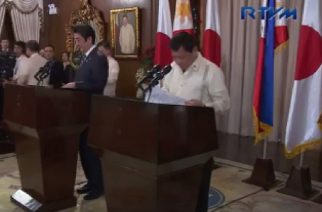 (Eagle News) – President Rodrigo Duterte welcomed in Malacanang on Thursday (January 12) Japanese Prime Minister Shinzo Abe who is in the Philippines for a two-day official visit, becoming the first state leader to visit the country since the Philippine leader took office last year. “I am pleased to welcome Prime Minister Abe to Manila. As you all must and should be aware, he is the very first head of government to officially visit […]