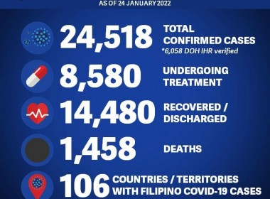 (Eagle News) — Over 100 more COVID-19 cases have been reported among overseas Filipinos. According to recent Department of Foreign Affairs data, the additional 145 cases pushed the total COVID-19 cases among Filipinos abroad to 24,518. Thirty-nine more have recovered, pushing the COVID-19 recovery tally to 14480. The DFA said no additional deaths were reported, which means the death toll remains at 1458. According to the department, the total number of countries and territories with […]