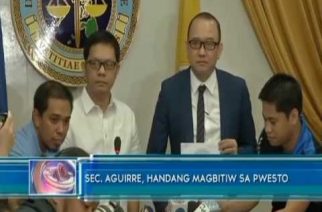 (Eagle News) — Tiniyak ni Justice Secretary Vitaliano Aguirre na magbibitiw siya sa pwesto sakaling maramdaman niyang wala nang tiwala si Pangulong Rodrigo Duterte sa kanya. Ito ay sa harap ng isyu ng katiwalian sa Bureau of Immigration na nasa ilalim ng Department of Justice at kinasasangkutan pa ng mga “ka brod” nila ng Pangulo sa fraternity. Pero sinabi ni Aguirre na sa ngayon ay naniniwala siya na kumpiyansa pa rin sa kanya ang Presidente.