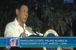 Reinstatement ni Supt. Marcos, di na kailangan ipaliwanag – Duterte