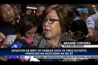 QUEZON City, Philippines (Eagle News) — Senator Leila De Lima appealed to the Supreme Court to take action on the petition she filed for writ of habeas data against President Rodrigo Duterte. She said this was to stop the alleged harassment against her by the President and his allies.