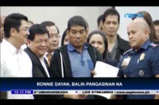 (Eagle News) — Ronnie Dayan, the former bodyguard and lover of Senator Leila De Lima is back in Pangasinan and under the protective custody of the provincial police. Dayab arrived in Pangasinan at around 10:30 p.m. on November 24 at the Pangasinan Police Provincial Office where he spent the night. He was officially turned over to the custody of Supt. Ronald Lee, the Pangasinan police provincial director. Thereafter, he immediately underwent medical examination. https://youtu.be/xbG7toy4VDU