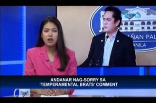 QUEZON City, Philippines (Eagle News) — Presidential Communications Secretary Martin Andanar apologized for his remark calling those who are protesting the Marcos burial in the Libingan ng mga Bayani as “temperamental brats”. Andanar also said that he does not have the intention of hurting the feelings as well as belittling the feelings of those who suffered during the martial law. https://youtu.be/dC5EbTjUd0k